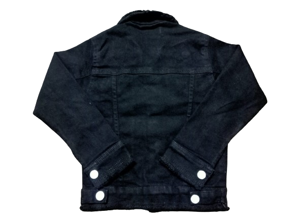 Girls Solid Black Full Sleeve Denim Jacket Pack of One. Sizes are S (2 Years), M (3 and 4 Years) and L (5 and 6 Years)