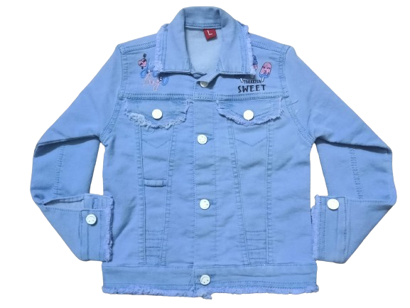 Girls Solid Sky Full Sleeve Denim Jacket Pack of One. Sizes are S (2 Years), M (3 and 4 Years) and L (5 and 6 Years)